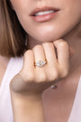 • Style: Three-stone engagement ring