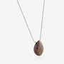 The pendant is hand-shaped into a classic pear silhouette, then oxidized to a deep, matte charcoal tone that brings warmth instead of coldness to silver. Natural champagne diamonds in varying sizes are set irregularly across the surface, each one flush-mounted to keep the profile smooth and wearable. The scattered pattern reads as intentional but not rigid, so every pendant has its own rhythm. The oxidized finish highlights the diamonds rather than competing with them, creating contrast that feels grounded. A slim sterling silver chain threads through the top, keeping the pendant flat and centred as you move.